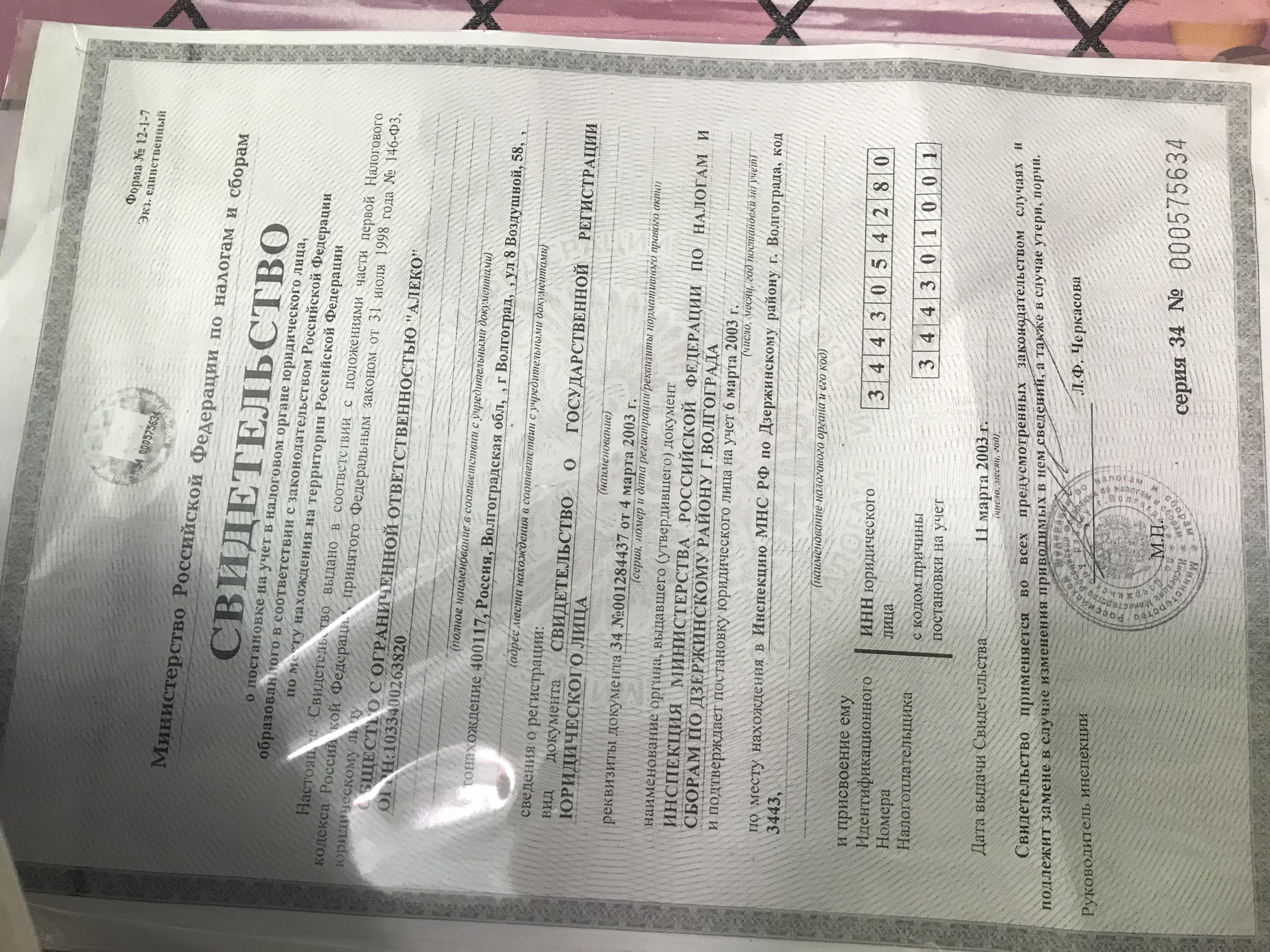 Адрес ООО "Алеко": 400117 , Россия, Волгоградская обл, г. Волгоград, ул. 8 Воздушной Армии, 58